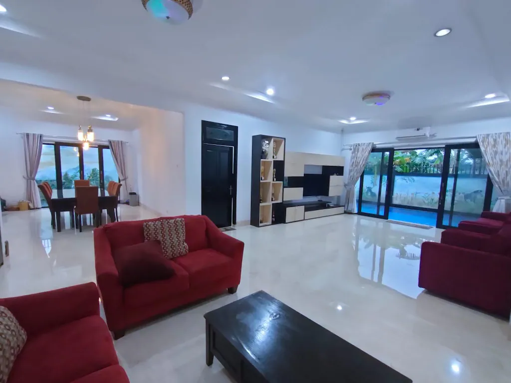 Villa ini menawarkan ruang yang luas dengan desain homey, pencahayaan alami yang hangat, serta area bersantai yang nyaman untuk quality time bersama orang tercinta. Fasilitas lengkap mulai dari kamar tidur bersih dan rapi, ruang tamu cozy, dapur fungsional, hingga area parkir memadai membuat pengalaman menginap jadi praktis dan menyenangkan.