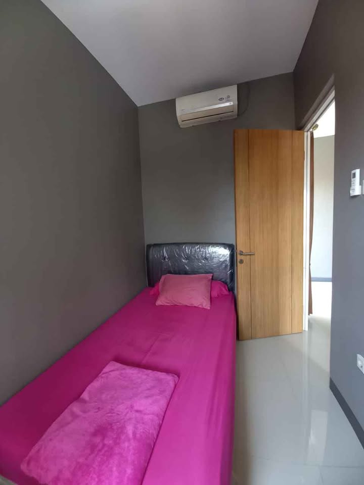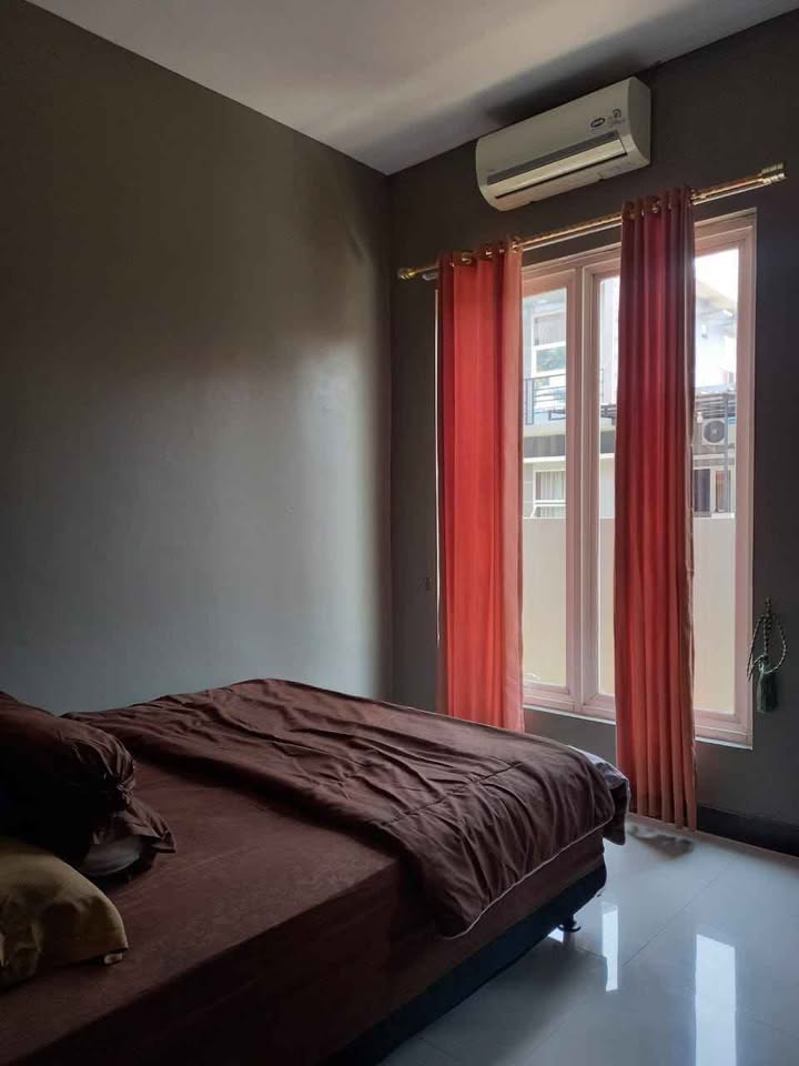 Fasilitas : Rumah 2 lantai full furnish dengan 3 kamar tidur, 1 kamar mandi dalam, AC, 2 kamar mandi luar, Dapur, Carpot, Living Room AC.