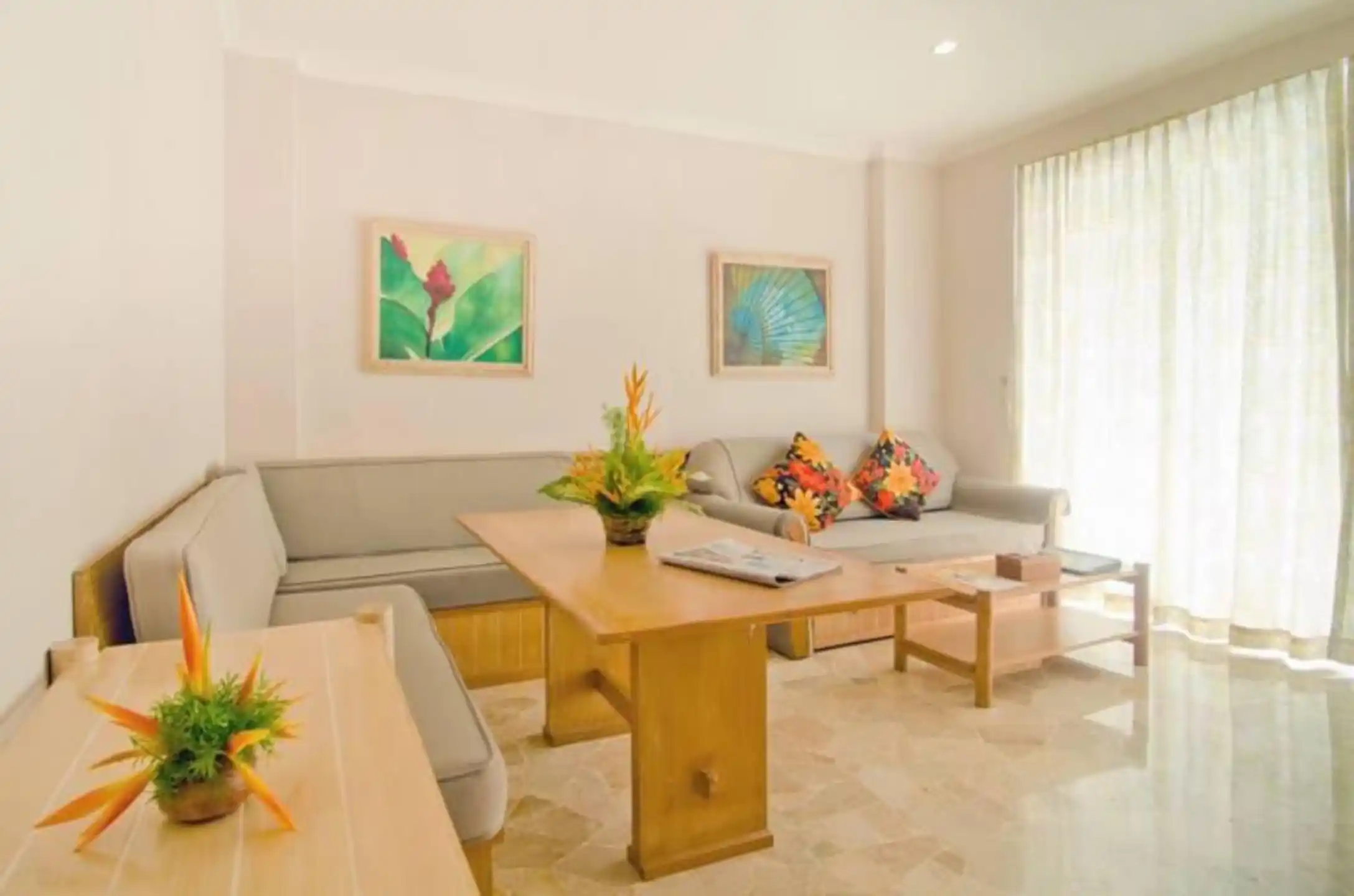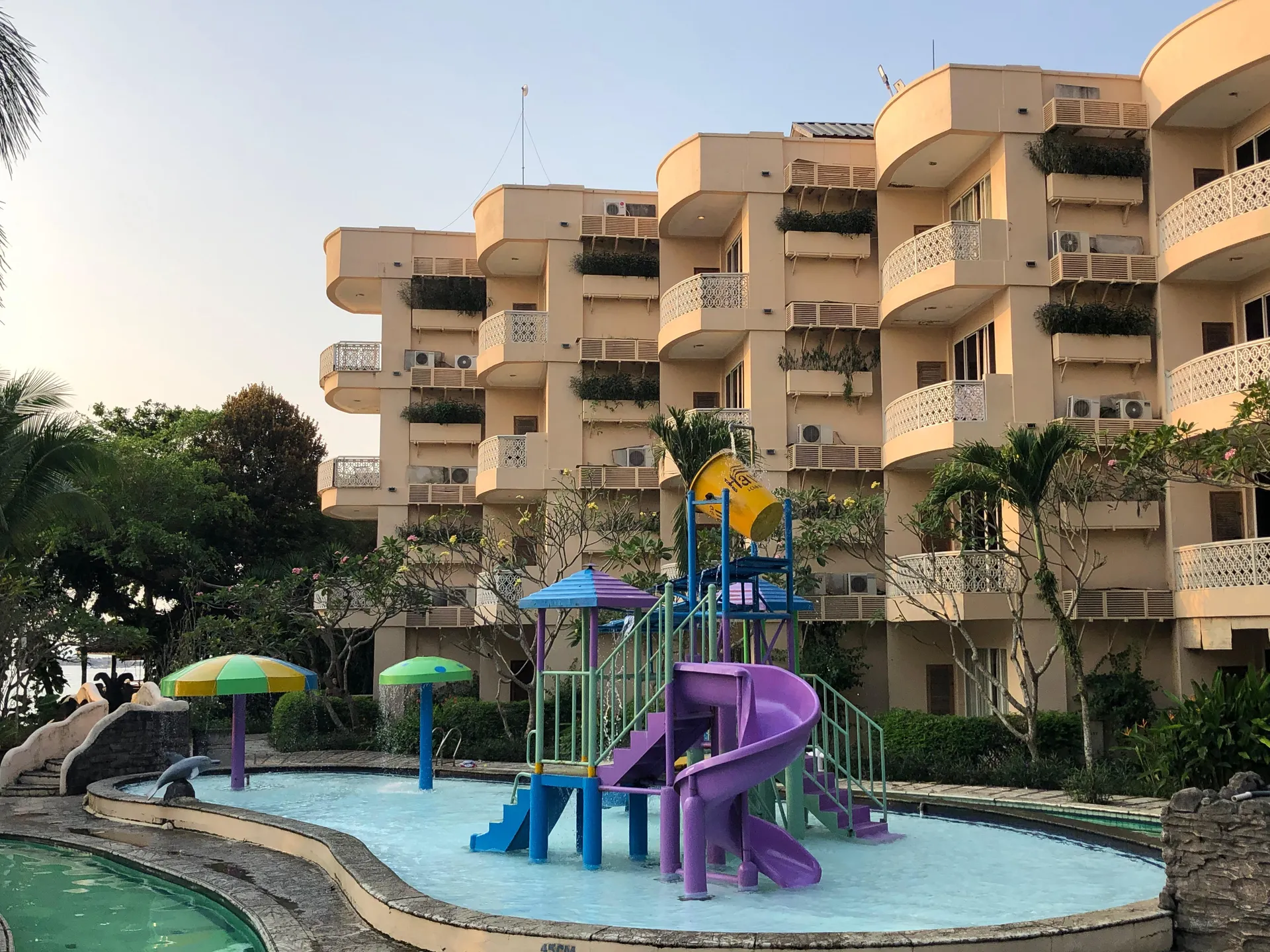 Fasilitas Lainnya: Tersedia parkir gratis, Wi-Fi gratis, dua kolam renang outdoor, akses ke pantai pribadi, taman air, restoran, dan spa