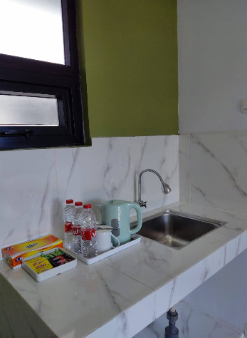 Beberapa fasilitas untuk menunjangan kenyamanan tamu: kamar mandi dalam, AC, smart TV, water heater, ukuran kamar 3x4, tempat tidur springbed, ukuran tempat tidur 160 x 200 cm, ukuran kamar 3x4 meter, terdapat dapur pribadi ukuran kamar 4x6 meter, bisa ditambah extrabed, terdapat dapur bersama, setiap kamar terdapat balkon. -Waktu tempuh 15 menit ke Universitas Terbuka, Sekolah Kharisma Bangsa, Universitas Muhamadiyah Jakarta - Waktu tempuh 30 menit ke RS Mitra Keluarga pamulang, RSIA Bunda Ciputat, RS Hermina, UIN - Waktu tempuh 30 menit ke arah pintu tol Bandara, BSD dan Tangerang