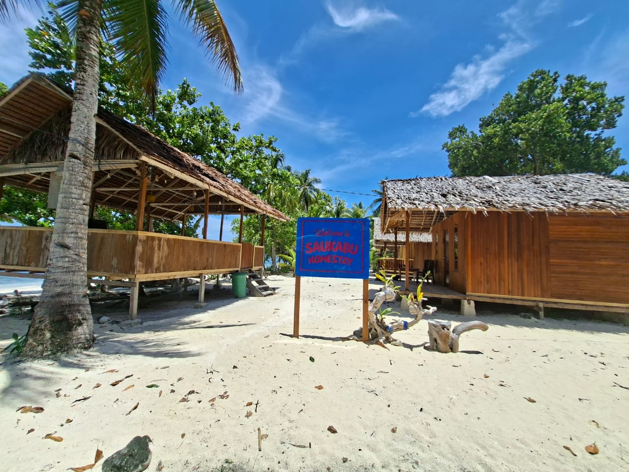` `Terletak di surga tersembunyi Raja Ampat, Saukabu Homestay menawarkan pengalaman menginap yang autentik, tenang, dan menyatu dengan keindahan alam tropis. Berada di kawasan Kampung Saukabu, Waigeo Barat Kepulauan, homestay ini dikelilingi hamparan laut biru jernih, pasir putih, serta panorama pulau karst yang ikonik.