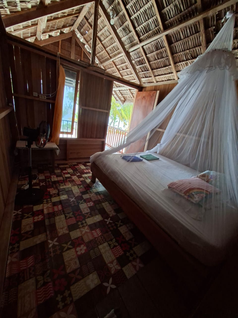 Homestay ini menghadirkan konsep sederhana namun nyaman dengan pilihan bungalow privat maupun keluarga yang menghadap langsung ke laut. Setiap kamar dilengkapi tempat tidur nyaman dengan kelambu, teras santai, serta pemandangan laut yang menenangkan—sempurna untuk menikmati sunrise maupun sunset khas Raja Ampat.
