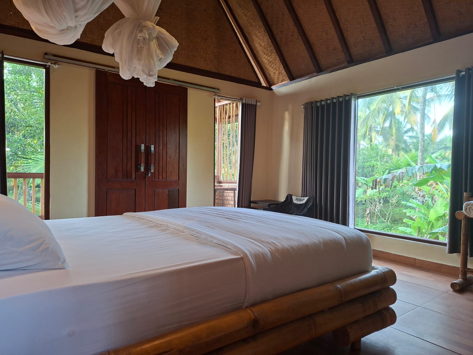 Fasilitas : Wifi, pemandangan, teras, balkon, lemari kecil, tempat sampah, air mineral, handuk, tisue, meja
