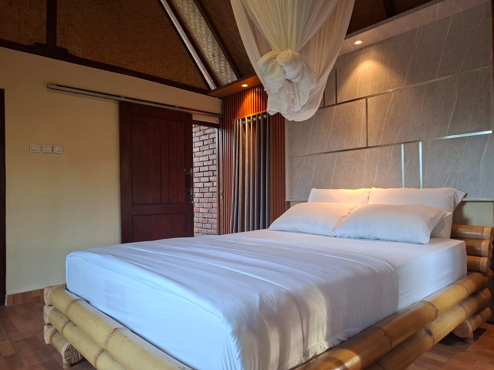 Detail kamar : ukuran bed (160x200), kamar mandi dalam dengan shower, toilet duduk, wastafel